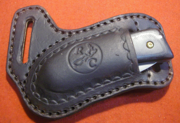 Sheath: leather, hand made with knife makers logo pressed into the leather