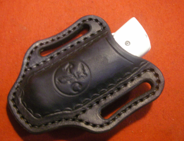 Sheath: leather, hand made with knife makers logo pressed into the leather